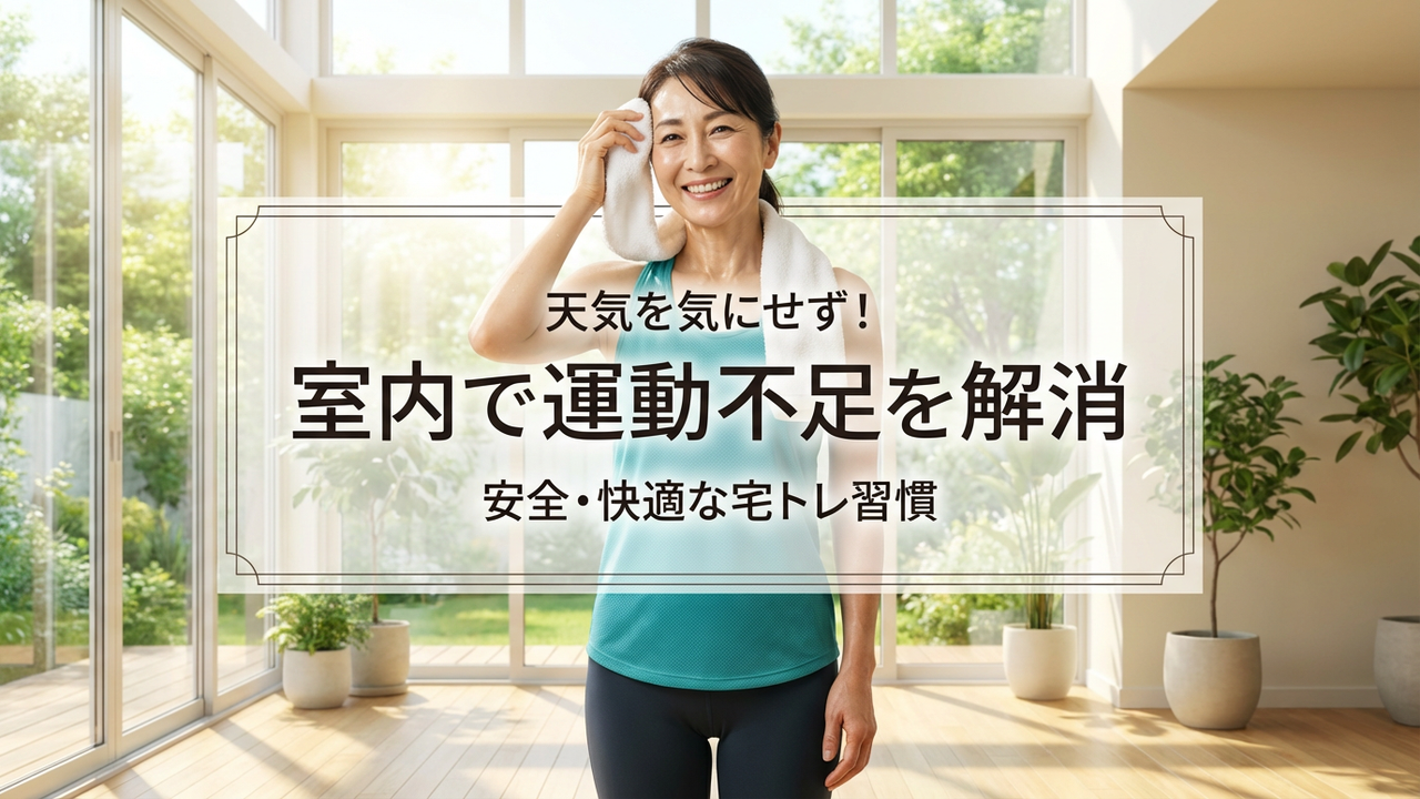 この記事では、シニアヘルスケアの専門家が推奨する、室内で安全に行える運動不足解消メニューをご紹介します。 今日からお家を小さなジムに変えて、天気に左右されない健康習慣を手に入れましょう。