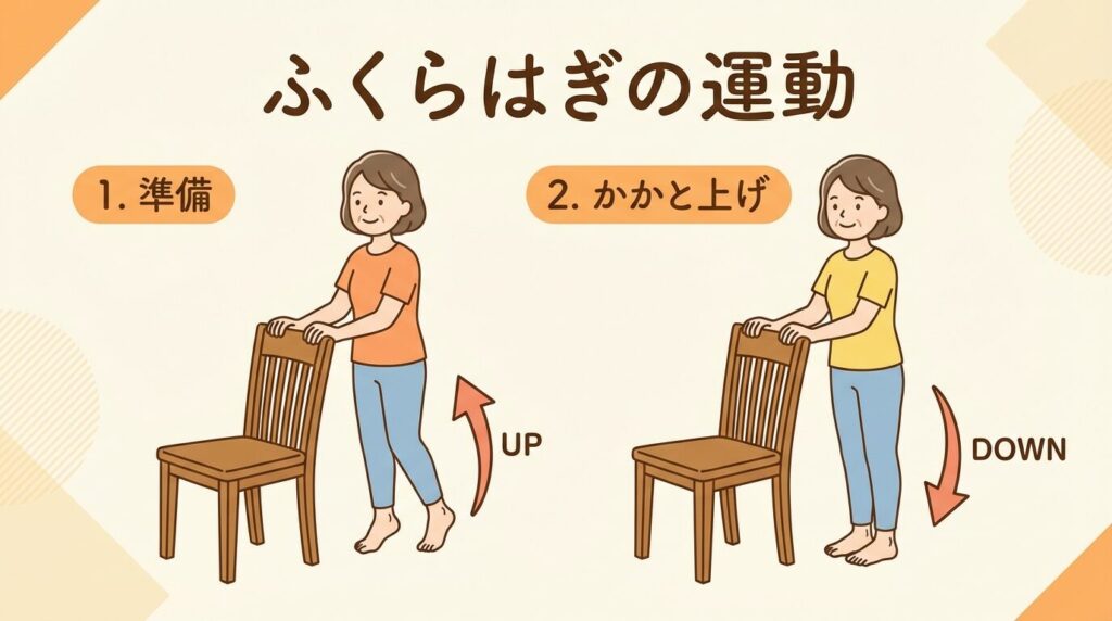 食事で栄養を補給したら、次は筋肉に刺激を与える運動です。サルコペニア予防で最も重要なのは、全身の筋肉の約7割が集まる下半身を鍛えることです。ここでは自宅で安全に行える効果的な運動をご紹介します。