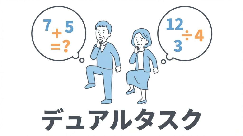 「歩きながら計算する」「足踏みしながらしりとりをする」といった、2つのことを同時に行う「デュアルタスク(二重課題)」トレーニングは、歩行に必要な身体機能と認知機能を同時に刺激する非常に有効な方法です。