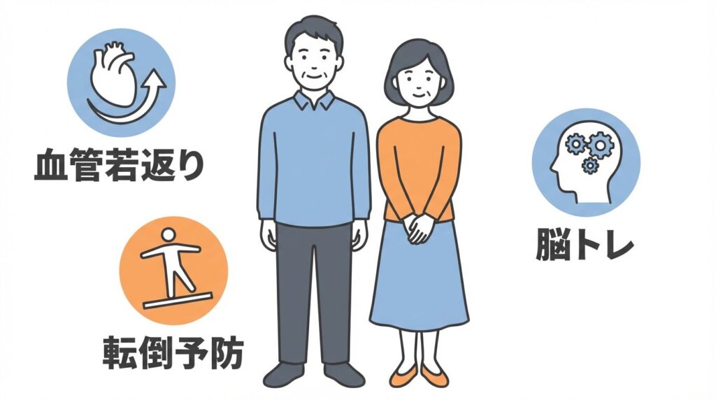 - 継続することで、転倒予防や認知症対策にもつながる。