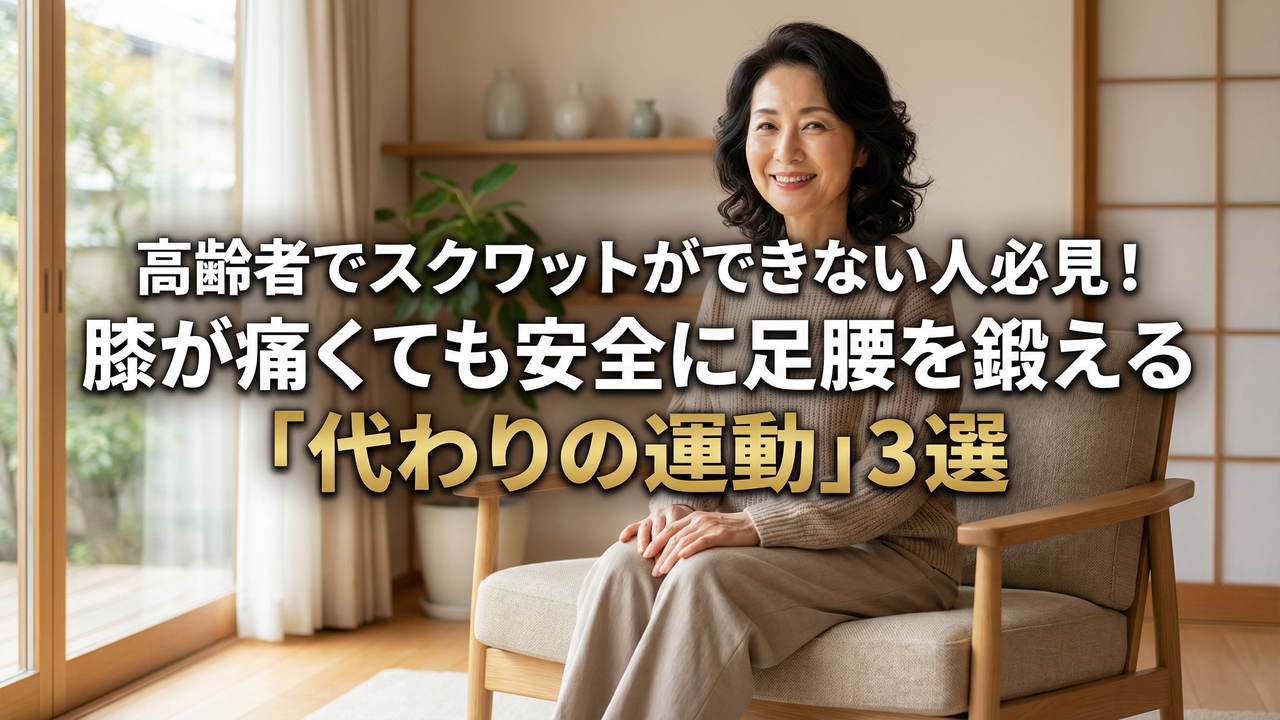 シニアの方に向けた、スクワットができない場合の代替運動について解説しました。